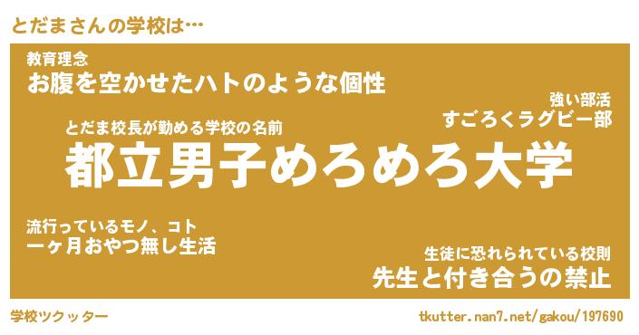| 意味不明あだ名 | 『ペロリンとだま』『とだまフォーエバー』 |