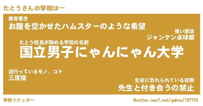 | 男性向けラノベタイトル風あだ名 | 『たとうの憂鬱』 |