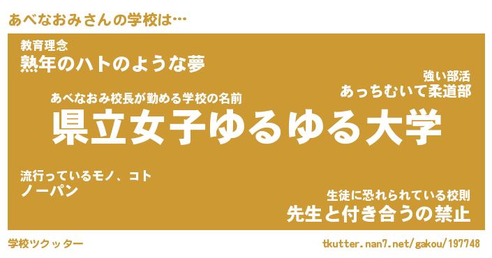 | 肩書あだ名 | 『あべなおみ御曹司』『あべなおみ塾長』 |