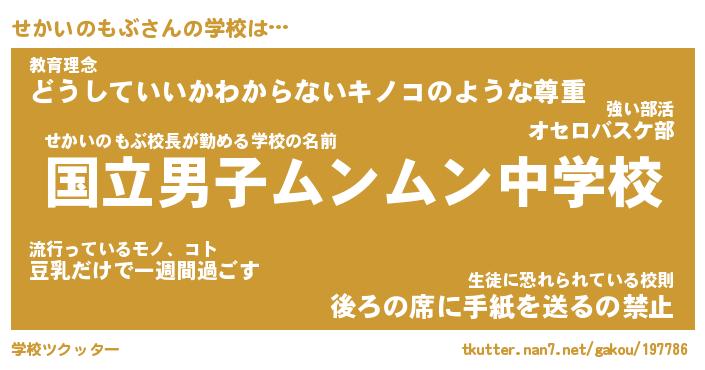 | 男性向けラノベタイトル風あだ名 | 『せかいのもぶの憂鬱』 |