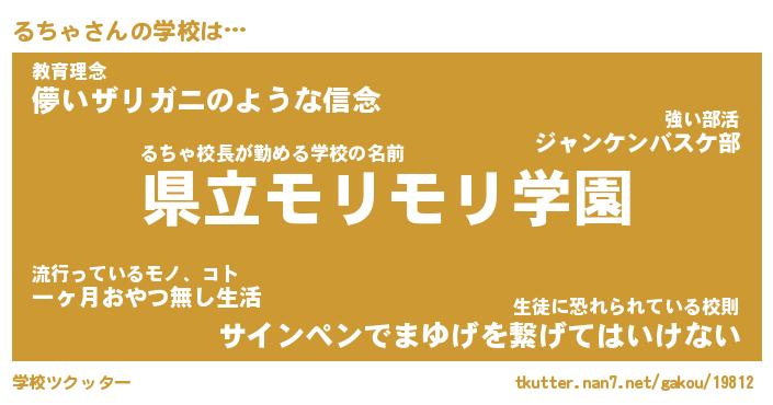 | 男性向けラノベタイトル風あだ名 | 『るちゃの憂鬱』 |