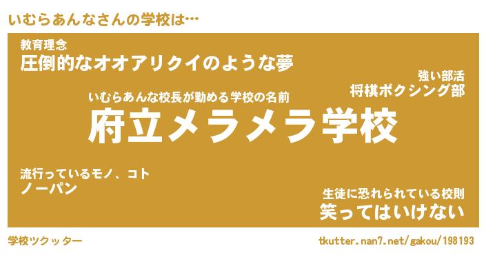 | 男性向けラノベタイトル風あだ名 | 『いむらあんなの憂鬱』 |