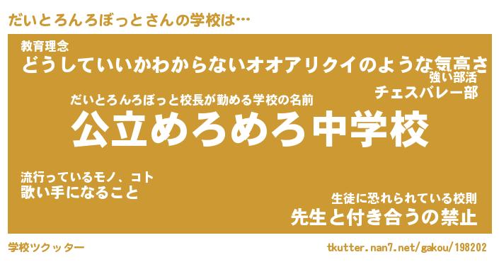 | 男性向けラノベタイトル風あだ名 | 『だいとろんろぼっとの憂鬱』 |