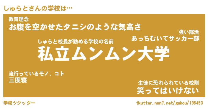 | ヒーロー風カッコイイあだ名 | 『スーパーシュラト』『黄金騎士シュ』 |