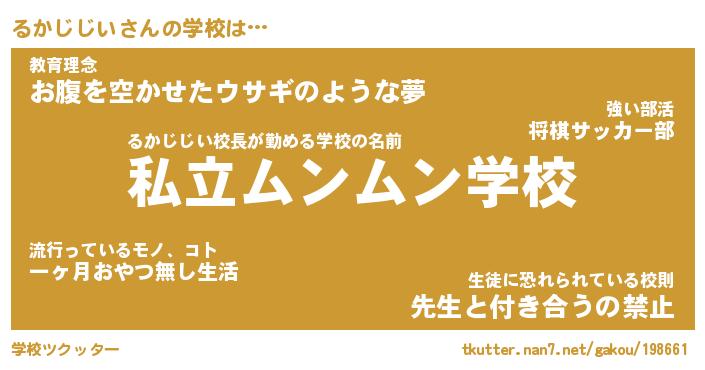 | 男性向けラノベタイトル風あだ名 | 『るかじじいの憂鬱』 |