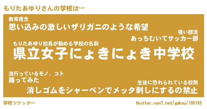 | 肩書あだ名 | 『もりたあゆり店長』『もりたあゆり先生』 |