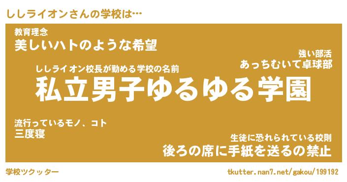 | 男性向けラノベタイトル風あだ名 | 『ししライオンの憂鬱』 |