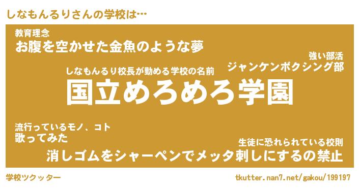 | 男性向けラノベタイトル風あだ名 | 『しなもんるりの憂鬱』 |