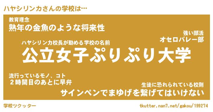 | 伝説のあだ名 | 『封印されしスナイパーハヤシリンカ』 |