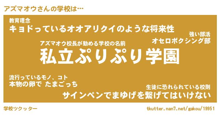 | 男性向けラノベタイトル風あだ名 | 『アズマオウの憂鬱』 |
