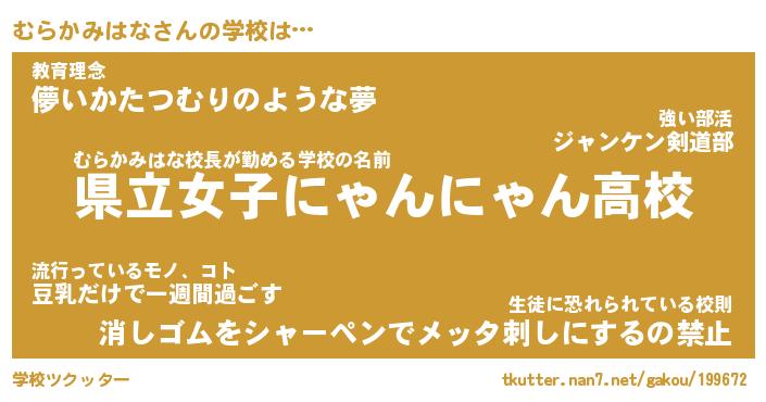 | 男性向けラノベタイトル風あだ名 | 『ムラカミハナアートオンライン』 |