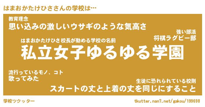 | 先生 | はまおかたけひさ先生が勤める学校名『府立しゃくれ小学校』 |