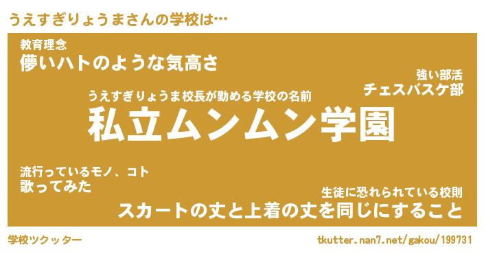 | 男性向けラノベタイトル風あだ名 | 『うえすぎりょうまの憂鬱』 |