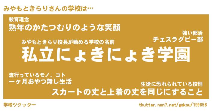 | ヘコむあだ名 | 『みやにゅー』『つくし』『みや太郎』 |