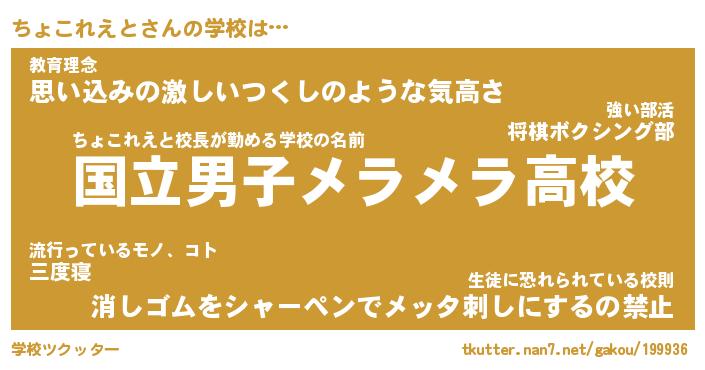 | 料理風あだ名 | 『節約★ちょこれえとと油揚げの玉子丼』 |