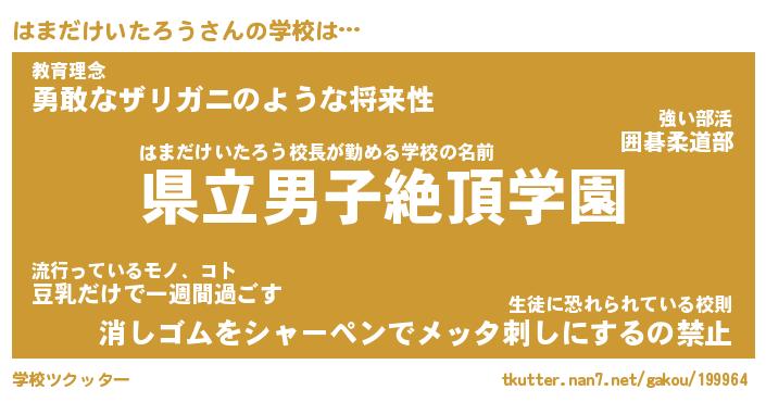 | 女子向けラノベタイトル風あだ名 | 『はまだけいたろう姫と円卓の騎士』 |