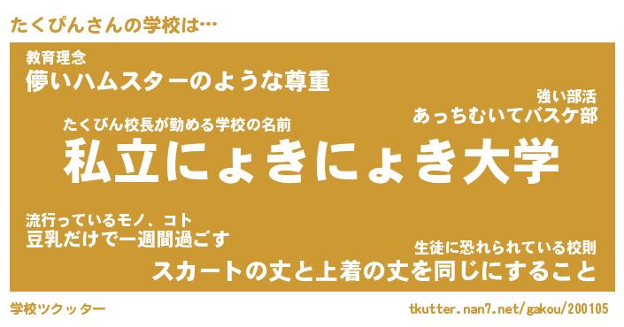 | 意味不明あだ名 | 『ペロリンたくぴん』『永久保存たくぴん』 |