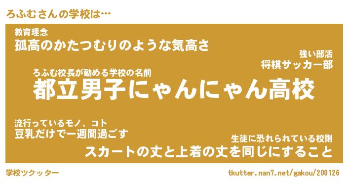 | ヘコむあだ名 | 『ろふもー』『つくし』『ろふ太郎』 |
