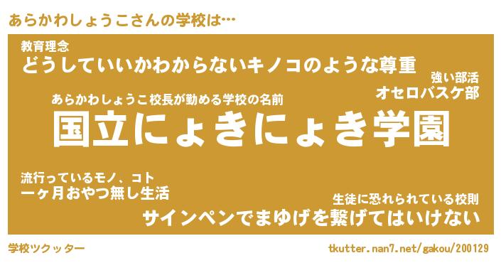 先生 あらかわしょうこ先生が勤める学校名『国立もふもふ小学校