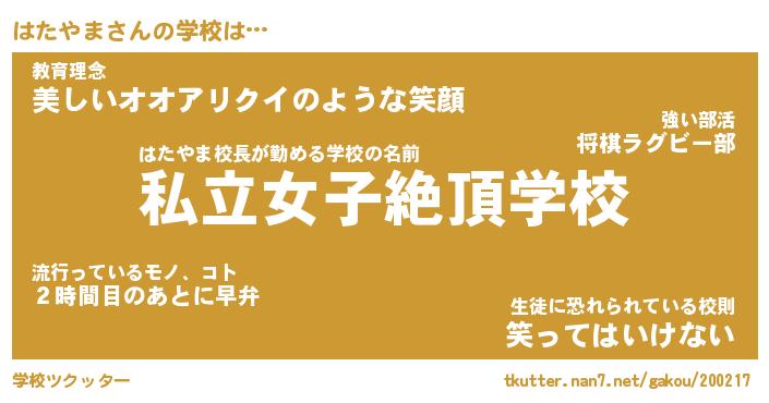 | 男性向けラノベタイトル風あだ名 | 『ハタヤマアートオンライン』 |