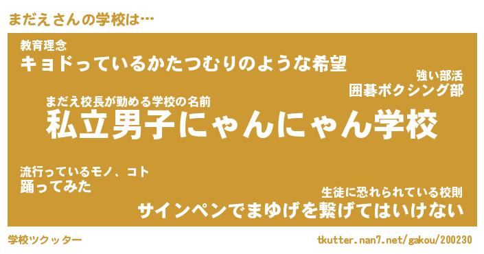 | ピコ太郎風あだ名 | 『マコ四郎』『ピマ太郎』『マダ一郎』 |