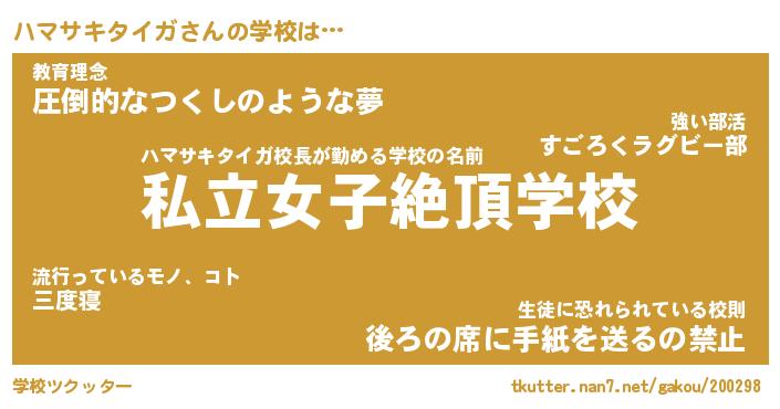 | 男性向けラノベタイトル風あだ名 | 『ハマサキタイガアートオンライン』 |