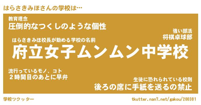 | ヒーロー風カッコイイあだ名 | 『スーパーハラサキミホ』『黄金騎士ハラ』 |
