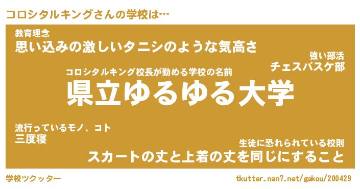 | 男性向けラノベタイトル風あだ名 | 『コロシタルキングの憂鬱』 |