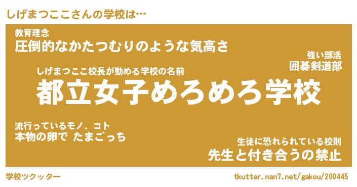 | ヘコむあだ名 | 『しげっふぃ~』『つくし』『しげを』 |