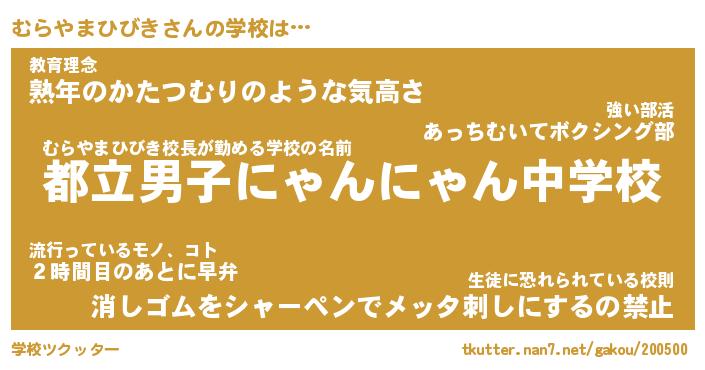 | 男性向けラノベタイトル風あだ名 | 『ムラヤマヒビキアートオンライン』 |