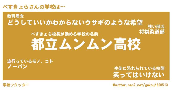 | 男性向けラノベタイトル風あだ名 | 『べすきょらの憂鬱』 |