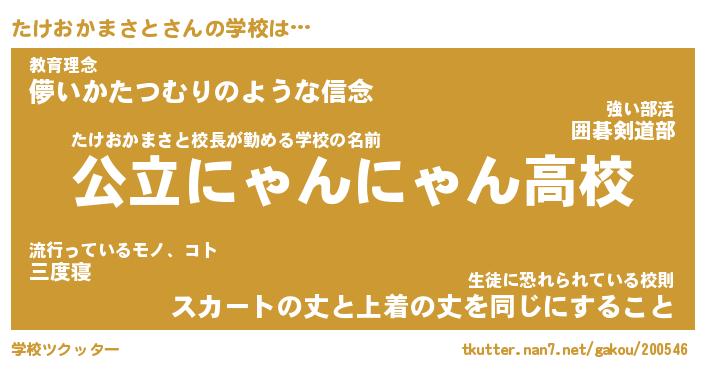 | ヘコむあだ名 | 『たけもー』『なまこ酢』『たけっ子』 |