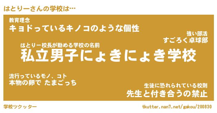 | 意味不明あだ名 | 『ペロリンはとりー』『永久保存はとりー』 |
