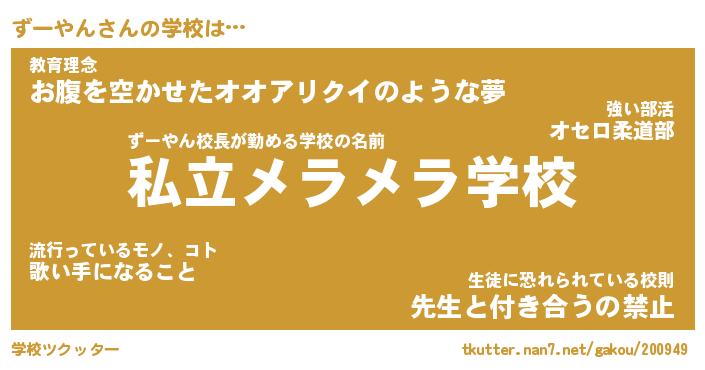 | 番長 | ずーやん、またの名を・・・!『伝説のずーやんちゃん』 |