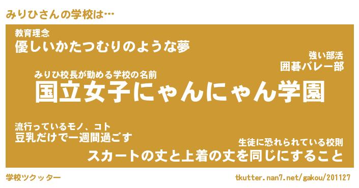| 意味不明あだ名 | 『ペロリンみりひ』『みりひフォーエバー』 |