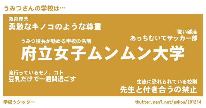 | ピコ太郎風あだ名 | 『ウコ四郎』『ピウ五郎』『ウミ一郎』 |