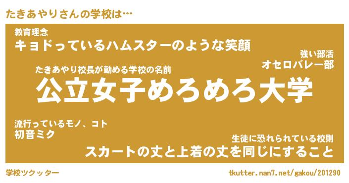 | ヘコむあだ名 | 『たきっふぃ~』『酢こんぶ』 |