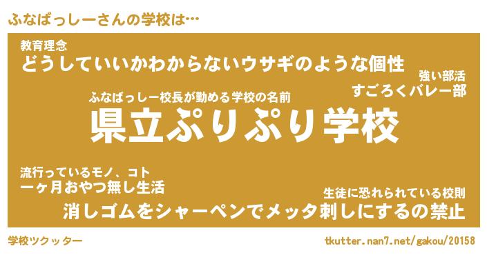 | 男性向けラノベタイトル風あだ名 | 『ふなばっしーの憂鬱』 |