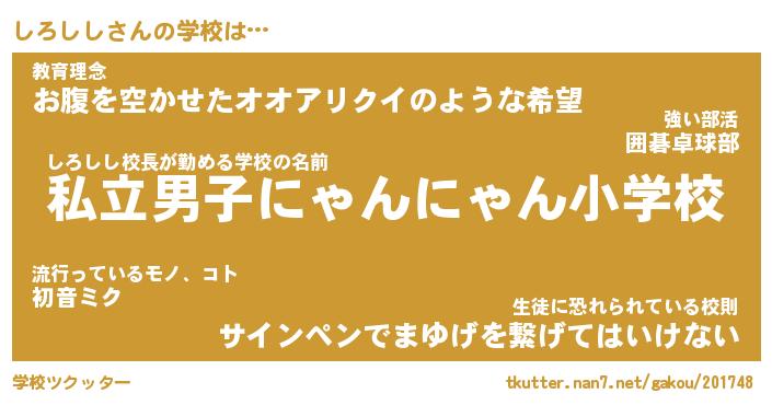 | 男性向けラノベタイトル風あだ名 | 『しろししの憂鬱』 |