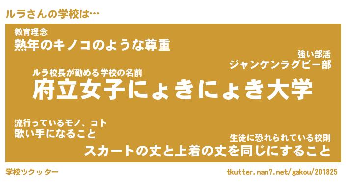 | ヘコむあだ名 | 『ルラにゅー』『豆乳』『ルラぷりん』 |