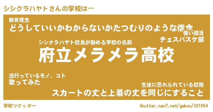 | 男性向けラノベタイトル風あだ名 | 『シシクラハヤトの憂鬱』 |