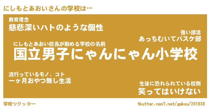| ヘコむあだ名 | 『にしもー』『つくし』『にしお』 |