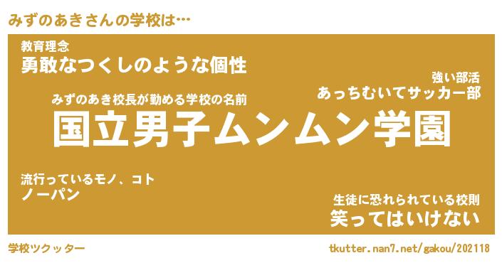 | 男性向けラノベタイトル風あだ名 | 『みずのあきの憂鬱』 |