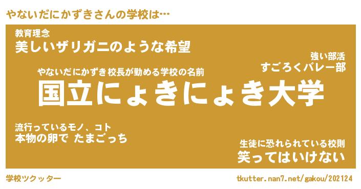 | 男性向けラノベタイトル風あだ名 | 『やないだにかずきの憂鬱』 |