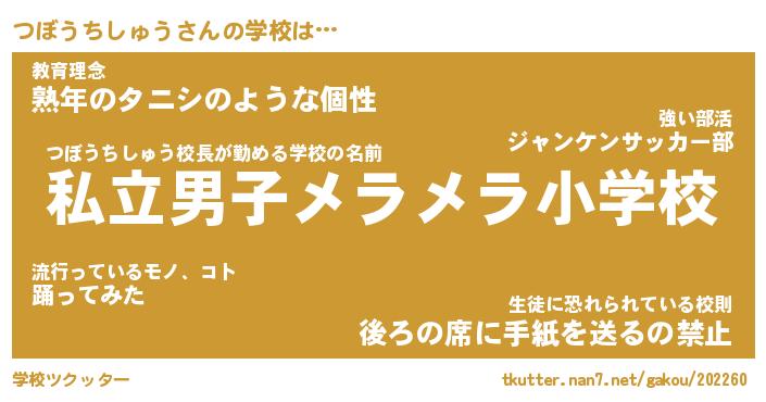 | 男性向けラノベタイトル風あだ名 | 『つぼうちしゅうの憂鬱』 |
