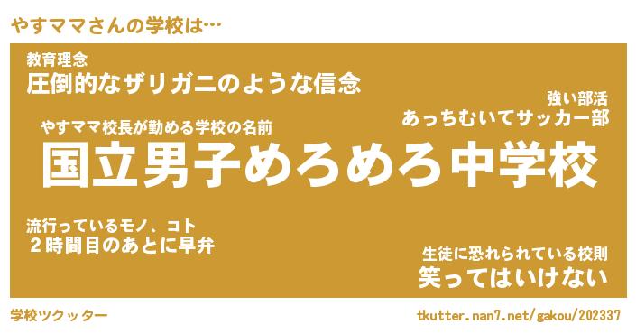 | 公立男子ムキムキ中学校は(略 …「」 | 10月03日 07:36 |