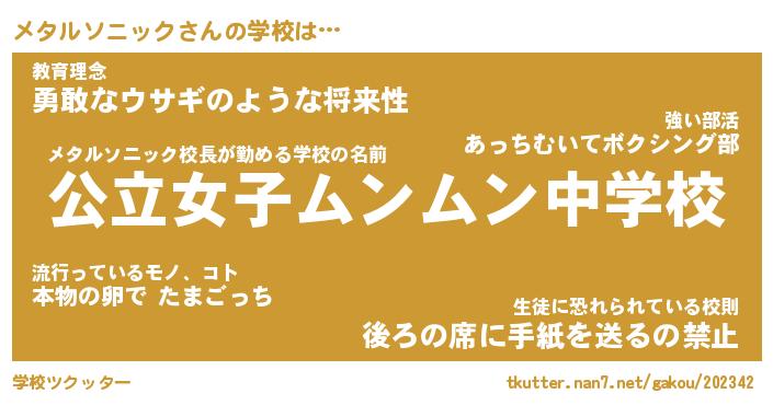 | ヘコむあだ名 | 『メタにゅー』『なまこ酢』『メタを』 |