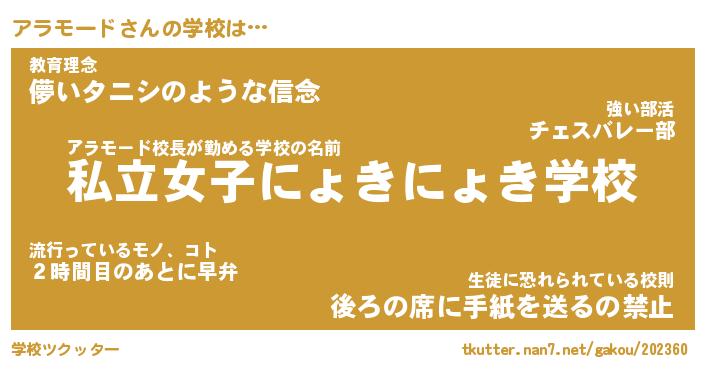 | 男性向けラノベタイトル風あだ名 | 『アラモードアートオンライン』 |