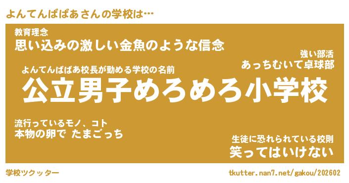 | 男性向けラノベタイトル風あだ名 | 『よんてんばばあの憂鬱』 |