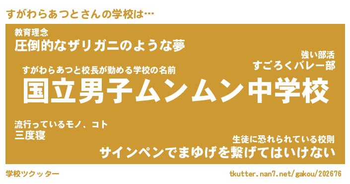 | 男性向けラノベタイトル風あだ名 | 『すがわらあつとの憂鬱』 |